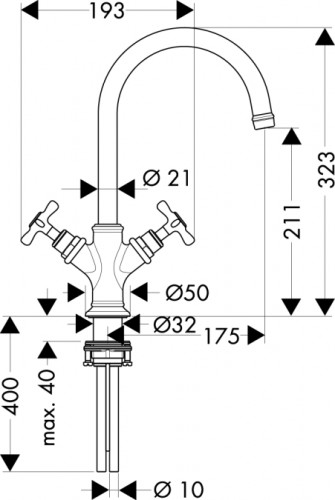 Hansgrohe Axor Montreux Змішувач для раковини, з двома ручками, з мідними трубками