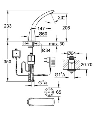 Змішувач для раковини електронний сенсорний з донним клапаном Grohe Ondus матовий хром 36079BS0