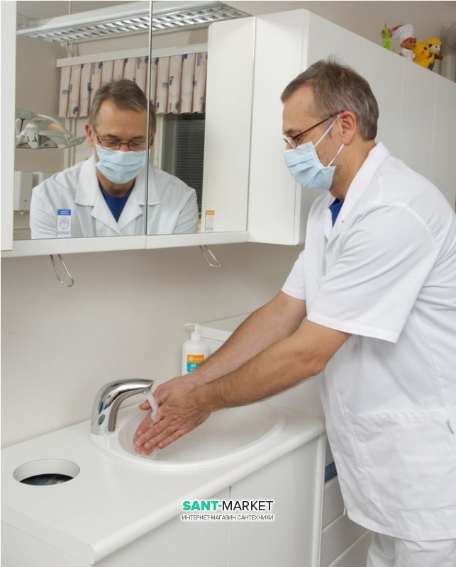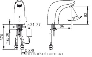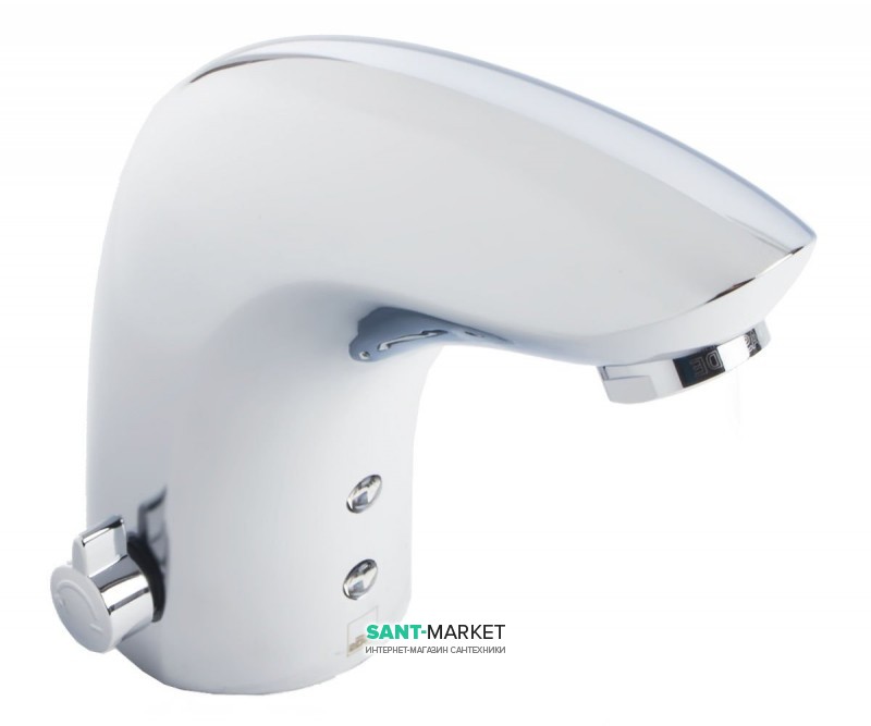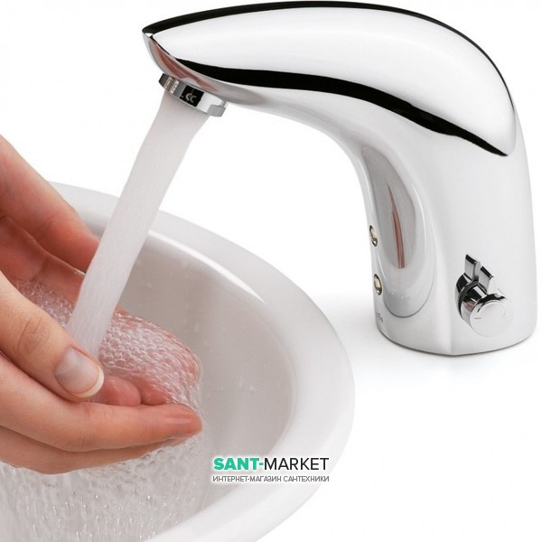 Безконтактний змішувач для умивальника з рукояткою регулювання температури (при поставці із заводу). При установці змішувач може бути легко модифікований для роботи без рукоятки регулювання температури (попередньо задана температура) і для використання попередньо змішаної води. Працює від батарейки 6 В. Завдяки високому класу захисту (IP 67) змішувач підходить практично для будь-яких умов експлуатації.
