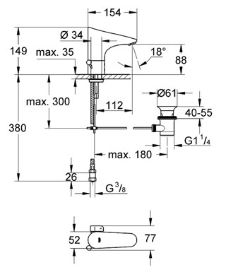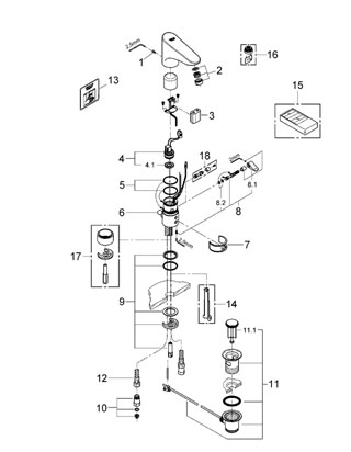 Змішувач для раковини електронний сенсорний з донним клапаном Grohe колекція Europlus E хром 36236000
