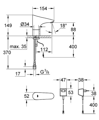 Змішувач для раковини електронний сенсорний Grohe колекція Europlus E хром 36016000