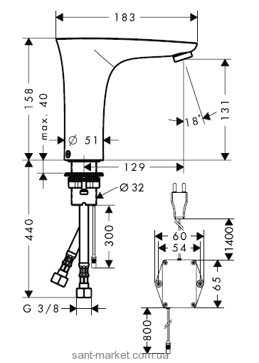 Змішувач для раковини електронний сенсорний Hansgrohe PuraVida хром / білий 15172400