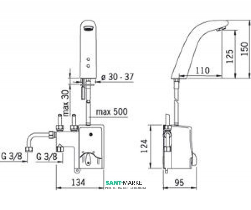 Опис: Безконтактний змішувач для умивальника зі змішуючим клапаном. в змішувальному блоці є підключення для змішувача кухонного. Працює від батарейки 6 В. Змішувач, що встановлює, не потрібно робити регулювання роботи змішувача. Змішувач оснащений грязьовими фільтрами та зворотними клапанами.