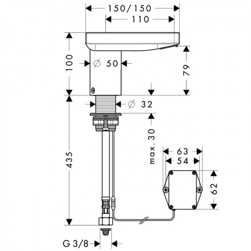 - ефективність може бути знижена у випадку, якщо датчик прихований і коли в раковині малого розміру відстань між сенсором та руками >75 мм