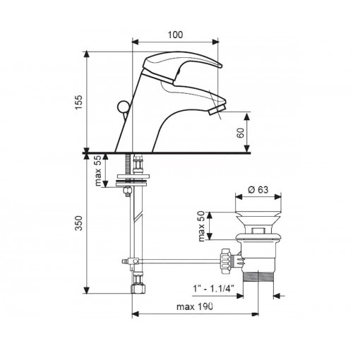 - Довжина виливу: 100 мм
