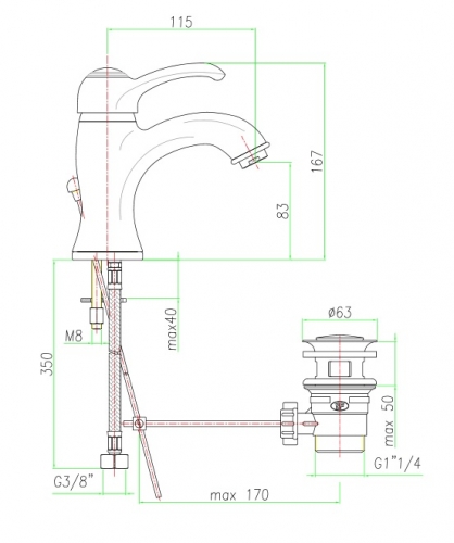 - Довжина виливу: 115 мм