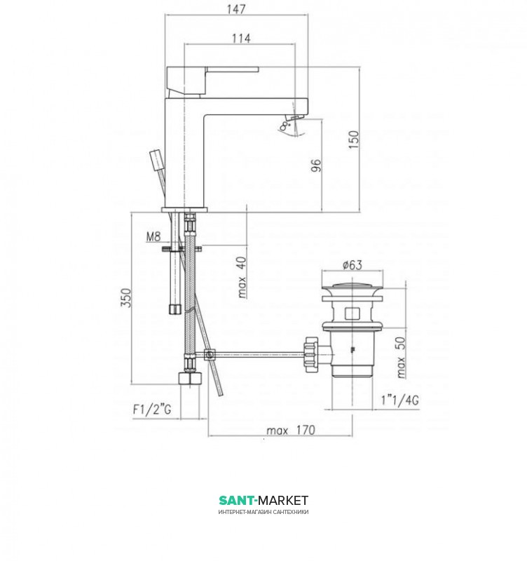 Змішувач для раковини Fiore KATANA хром 77CR7520
