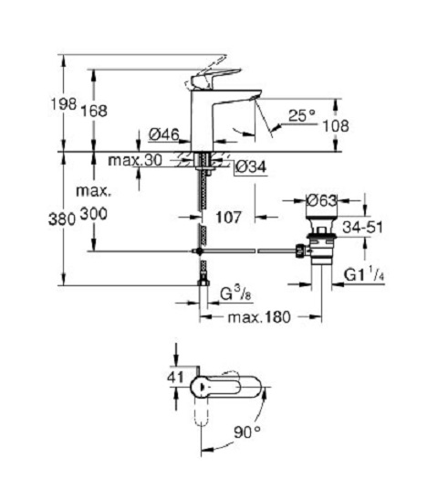 1) Змішувач для раковини Grohe BauEdge змішувач 1/2 "хром