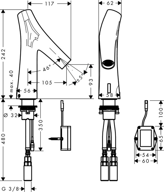- функція може бути обмежена при використанні для раковин з піднесенням або з дуже широким краєм раковини (> 75 мм)