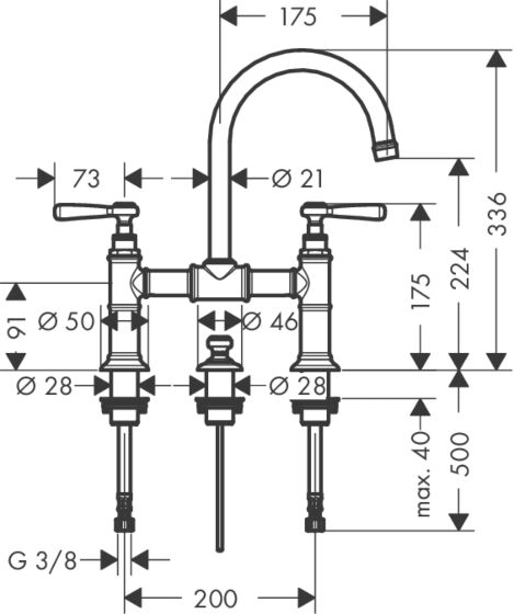 - складається з: змішувач для раковини з 2 ручками, слив / перелив