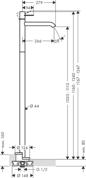 1) Змішувач для раковини Hansgrohe Axor Uno підлоговий золото