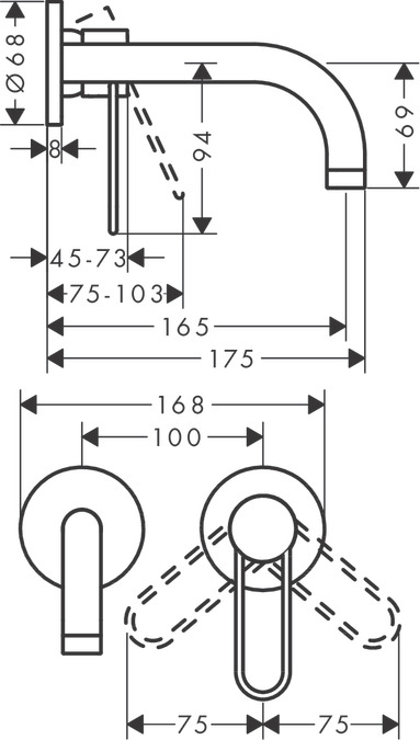 - складається з: змішувач для раковини, одноручковий, прихованого монтажу, настінний, слив / перелив