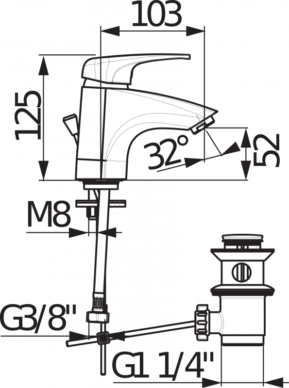 - Довжина виливу: 103 мм