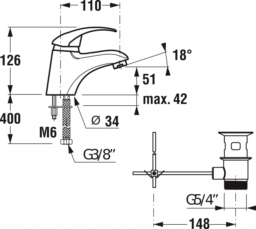 - Довжина виливу: 110 мм