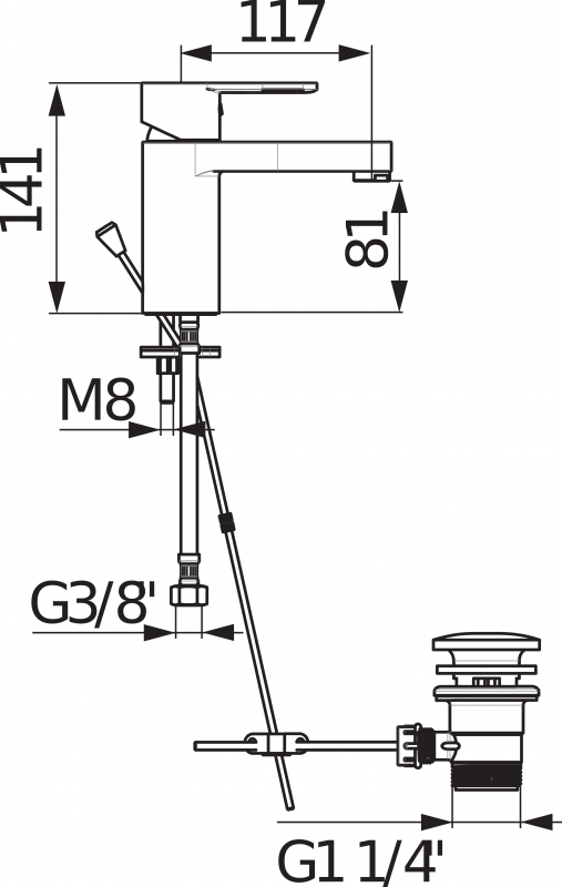 Змішувач для раковини Jika Mio-N змішувач з донним клапаном хром