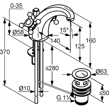 4) Підводки, донний клапан 1 1/4 "