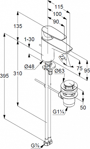 Змішувач для раковини без донного клапана, для безнапірних накопичувачів Kludi Pure & Solid 342760575