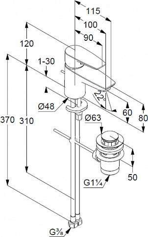 Змішувач для раковини Kludi Pure & Solid змішувач з донним клапаном 343850575