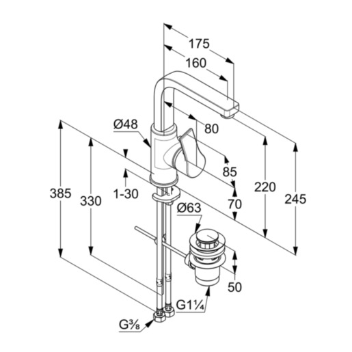 Змішувач для раковини Kludi Zenta SL 480270565 з донним клапаном, з високим поворотним виливом та зручним боковим управлінням. Ідеально гладка поверхня. Високоякісний аератор з системою проти вапняного нальоту спрощує обслуговування і забезпечує ніжний потік води.