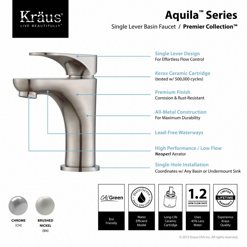 1) Змішувач для раковини Kraus Aquila