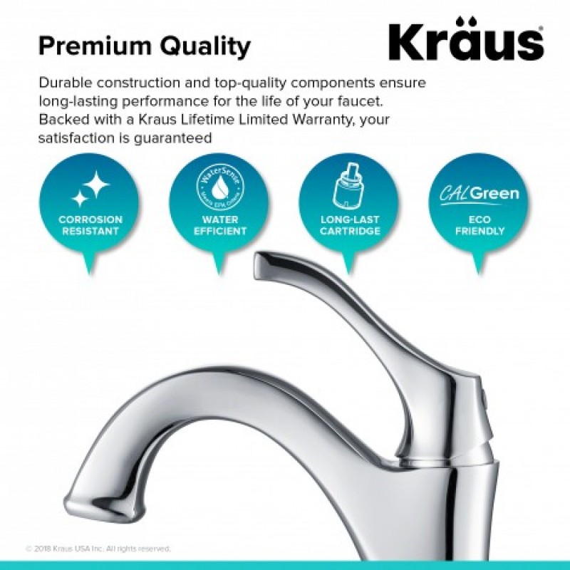 KBF-1201 - це преміум колекція Kraus. Плавні лінії змішувача надають ванній кімнаті елегантний і неповторний вигляд. Кран має унікальним дизайном і неперевершеним якістю.Змішувач виготовлений з твердої латуні.