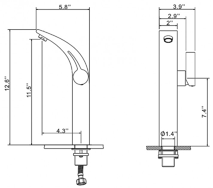 Змішувач виготовлений із твердої латуні з хромовим напиленням. Монтується на меблі або стільницю, через єдиний отвір. Високоякісний керамічний картридж Kerox герметично запаяний. Один важіль управління температурою та напором води. Робочий тиск – до 60 Па. Усі настановні деталі, шлангигарячої/холодної води в комплекті.