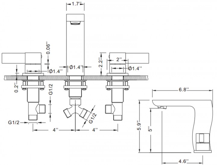 - Висота ручок крана 55 мм