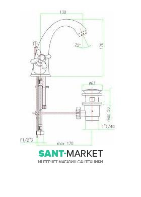 Змішувач для раковини на 1 отвір Fiore MARGOT золото 26OO0623