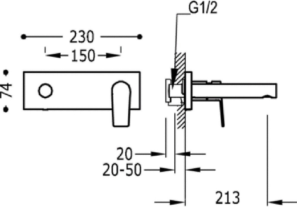 Змішувач для раковини настінний прихований Tres Project-Tres хром 21120202