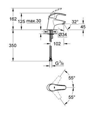 Змішувач для раковини одноважеля Grohe колекція Eurosmart хром 32467001