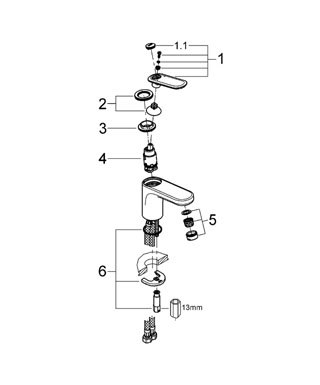 Картриджі GROHE мають диски з керамічного сплаву, що успішно застосовується в аерокосмічній галузі. Поверхня дисків покрита спеціальним мастилом марки Teflon®, що забезпечує їх кероване та плавне ковзання щодо один одного. Важіль змішувача з'єднаний з картриджем стрижнем, виготовленим з литої латуні для надійності, міцності та довговічності. Особливі керамічні диски та застосування технології Teflon® у картриджах GROHE SilkMove® забезпечують важелі змішувачів точний та легкий хід протягом усього термінуслужби.
