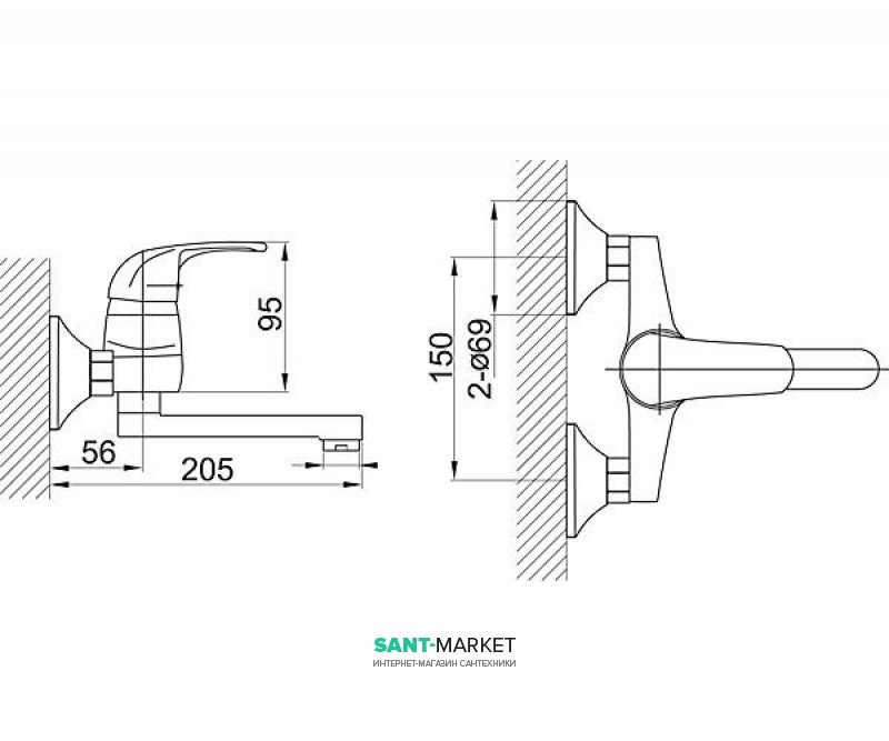 Змішувач для раковини одноважеля настінний Ferro колекція Vasto хром BVA3