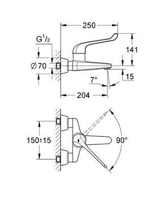 Змішувач для раковини одноважеля настінний Grohe колекція Euroeco Special хром 32795000