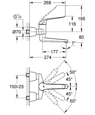 Змішувач для раковини одноважеля настінний Grohe колекція Euroeco Special хром 32774000