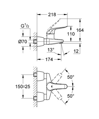 Змішувач для раковини одноважеля настінний Grohe колекція Euroeco Special хром 32777000
