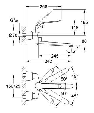 Змішувач для раковини одноважеля настінний Grohe колекція Euroeco Special хром 32775000