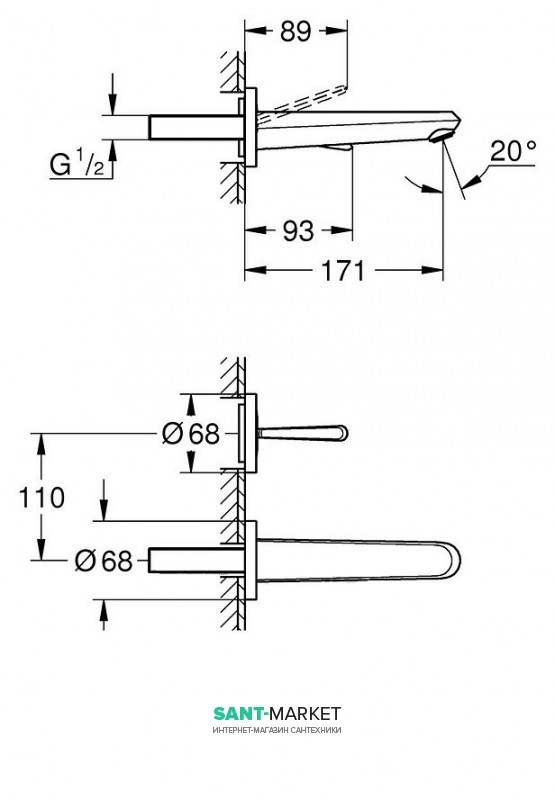 для установки потрібно прихована частина для змішувача 23429000