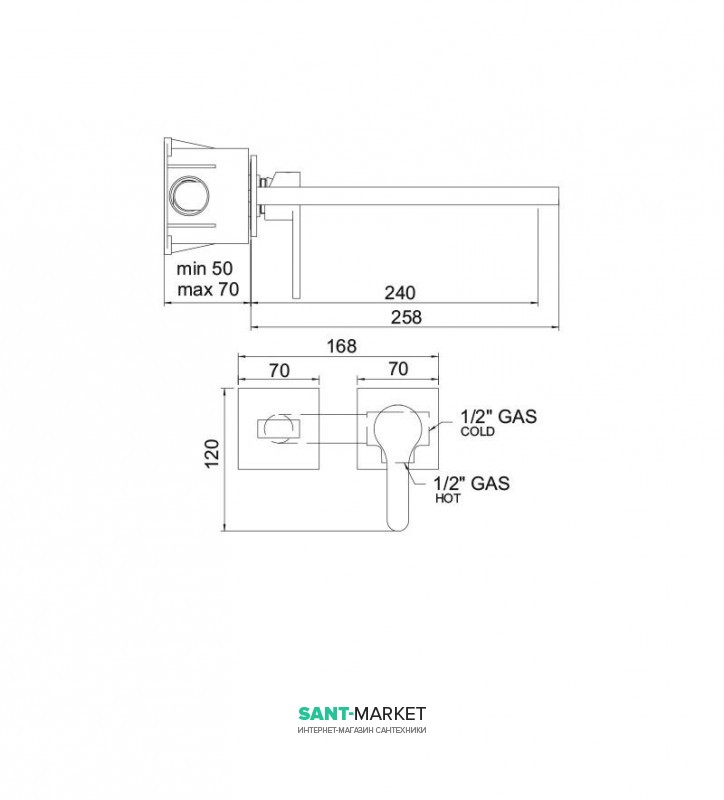 Змішувач для раковини одноважеля настінний Treemme Klab хром 2776CС06