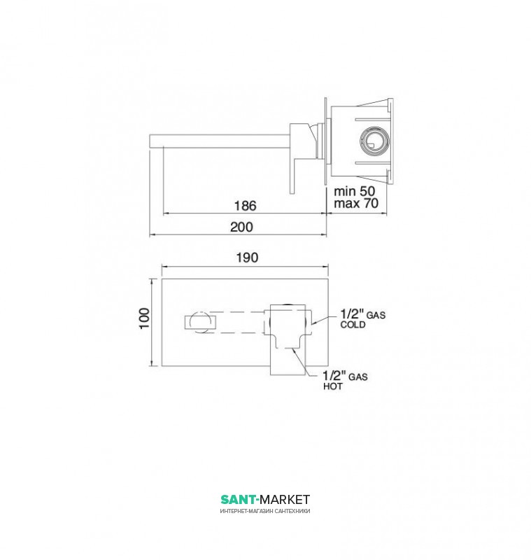 Змішувач для раковини одноважеля настінний Treemme хром 5651 СС 10