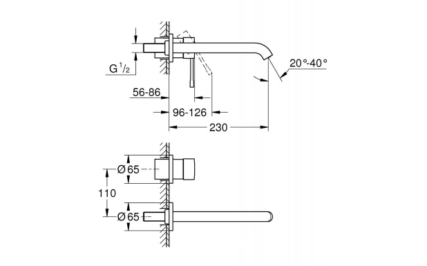 Змішувач для раковини одноважеля настінний Grohe колекція Essence (винос 230 мм) полірований нікель 19967BE1