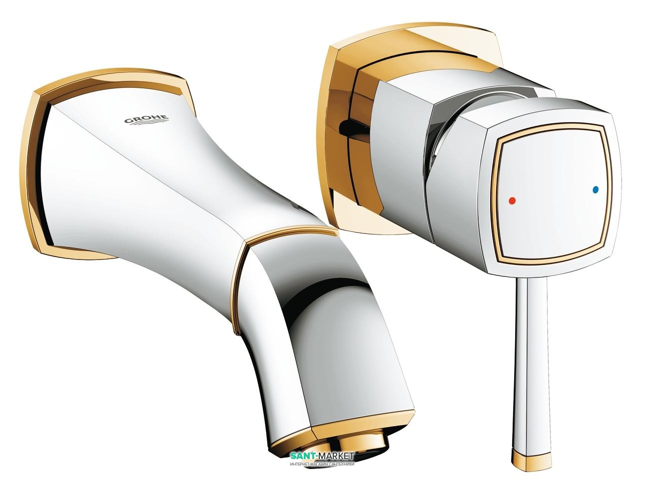 Змішувач для раковини одноважеля настінний Grohe колекція Grandera хром / золото 19929IG0