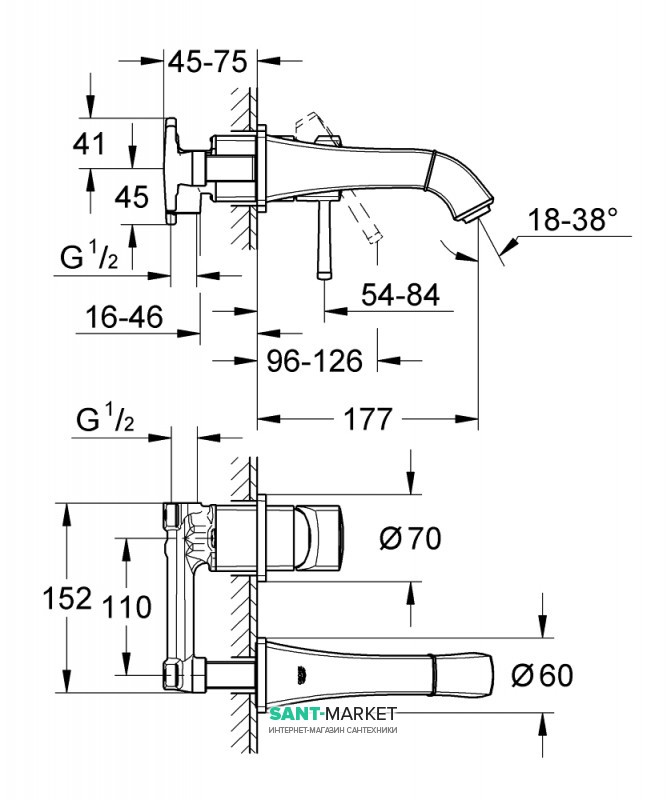 Роздільні рукоятки для регулювання гарячої та холодної води не завжди є обов'язковим атрибутом змішувачів настінного монтажу. Дана модель настінного монтажу з нашої ексклюзивної колекції Grandera є одноважільний змішувач у комплекті з настінним виливом. Обидва елементи мають довговічне хромоване покриття GROHE StarLight, яке забезпечує їм невибагливість у догляді та збереження сліпучого блиску навіть після багаторічної експлуатації. Повернувши обертовий наконечник AquaGuide під потрібним кутом, можна пристосувати напрямок струменя води відповідно до форми та глибини раковини. Вбудованийводозберігаючий механізм GROHE EcoJoy, що скорочує витрати води майже на 50% навіть при максимальному натиску, дозволить Вам повністю віддаватися насолоді водними процедурами, зберігаючи при цьому природні ресурси. Цей одноважільний змішувач настінного монтажу повинен встановлюватися тільки в комбінації з блоком GROHE 23319000, що вбудовується.