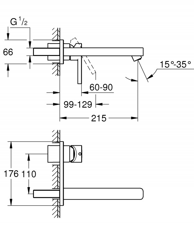 Змішувач для раковини одноважеля настінний прихований Grohe Lineare хром 23444000