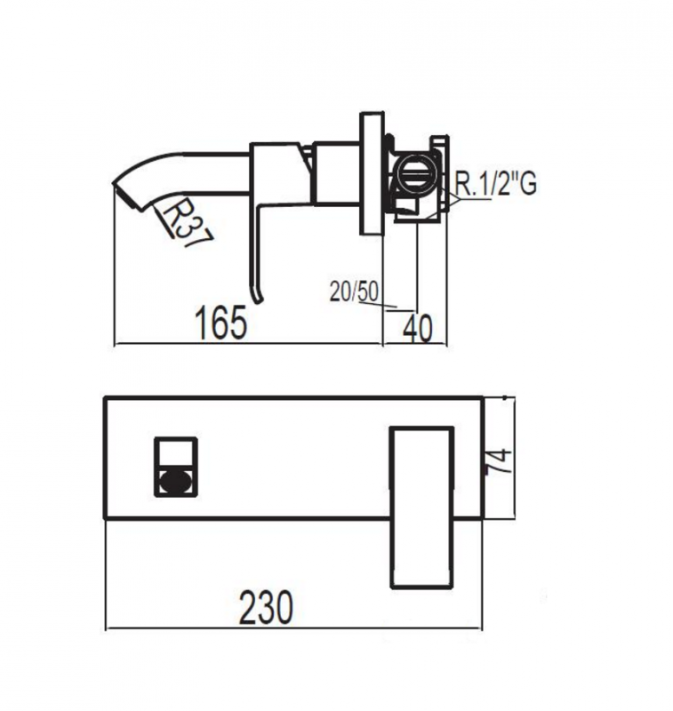 Змішувач для раковини одноважеля настінний Tres Cuadro Tres хром 106200