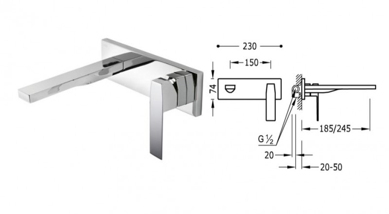 Змішувач для раковини одноважеля настінний Tres колекція Slim Tres хром 20220003