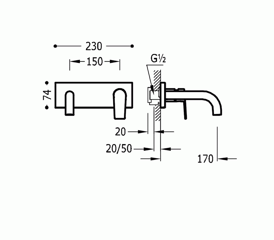 Змішувач для раковини одноважеля настінний Tres Project-Tres хром 21120001
