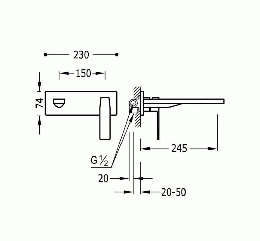 Змішувач для раковини одноважеля настінний Tres Slim-Tres хром 20220004