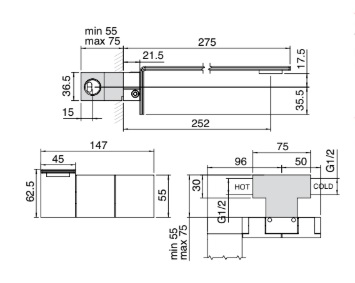 Змішувач для раковини одноважеля настінний Treemme 5 мм чорний матовий 2552NN