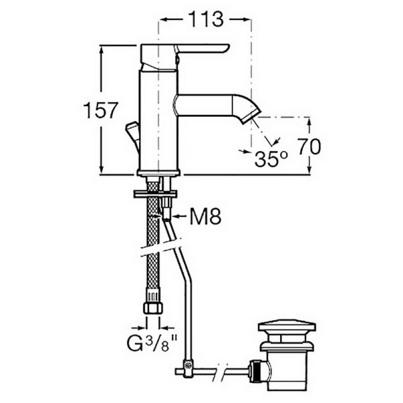 Змішувач для раковини одноважеля Roca Carelia з донним клапаном латунь хром A5A308AC0K