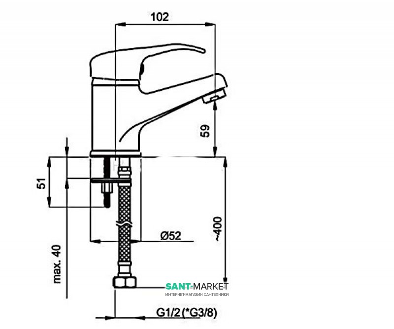 Змішувач для раковини одноважеля Rubineta колекція Yuta хром Y80003